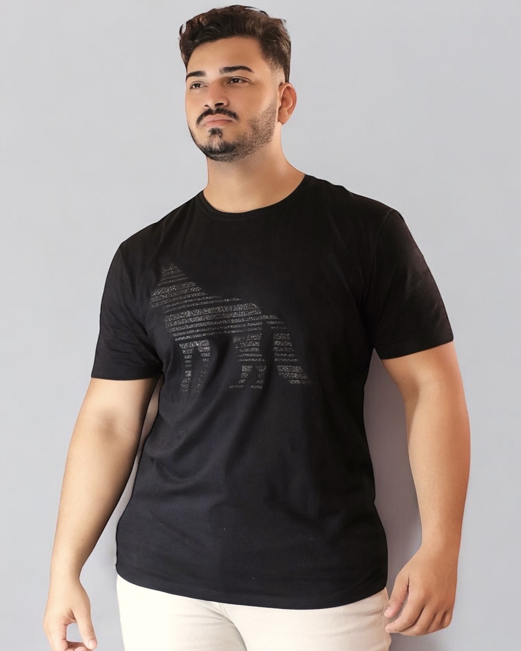 CAMISETA MASC TOUCH LOBO BRILHO ACOSTAMENTO